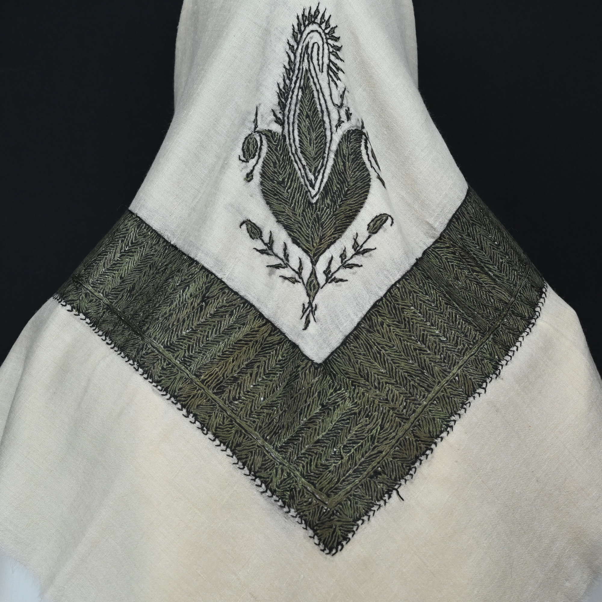 Traditional design shawl with Dark green shade/Black filler Embroidery