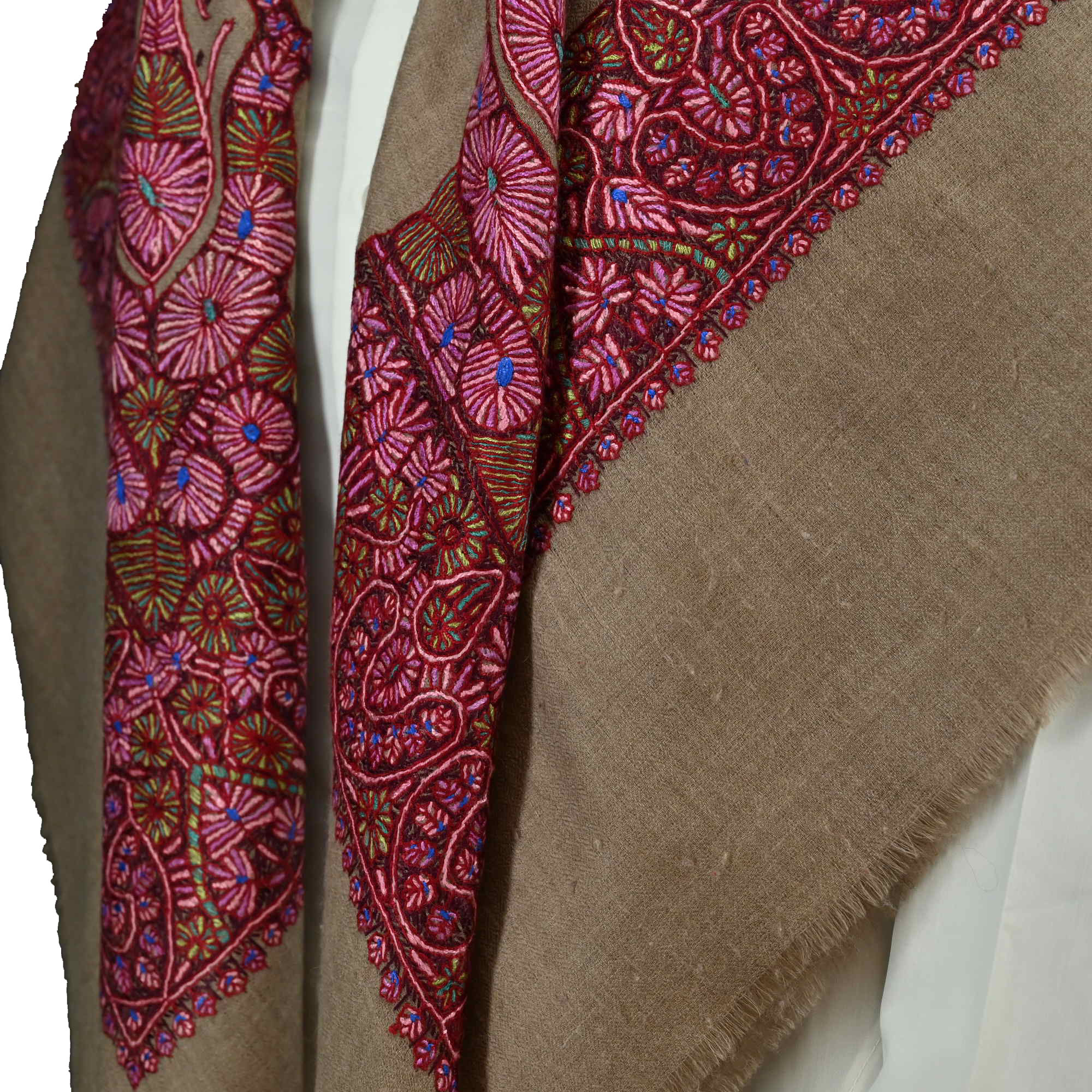 Sheenasic edition Kashmiri shawl with Multicolor Hand Embroidery and Brown base