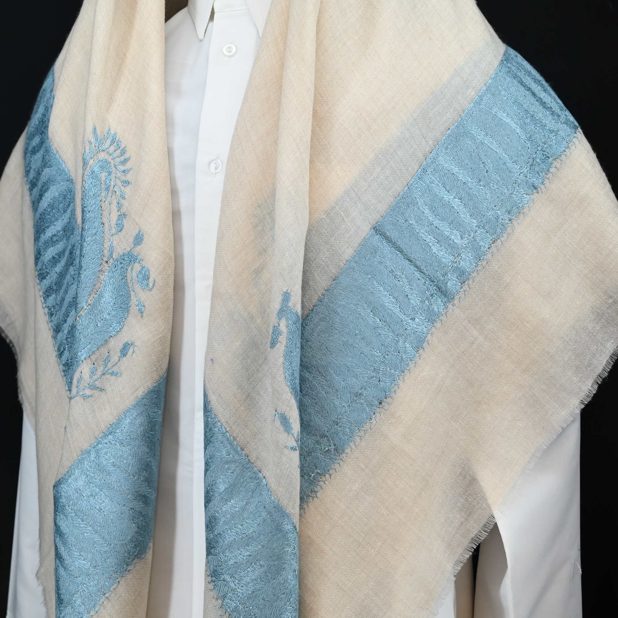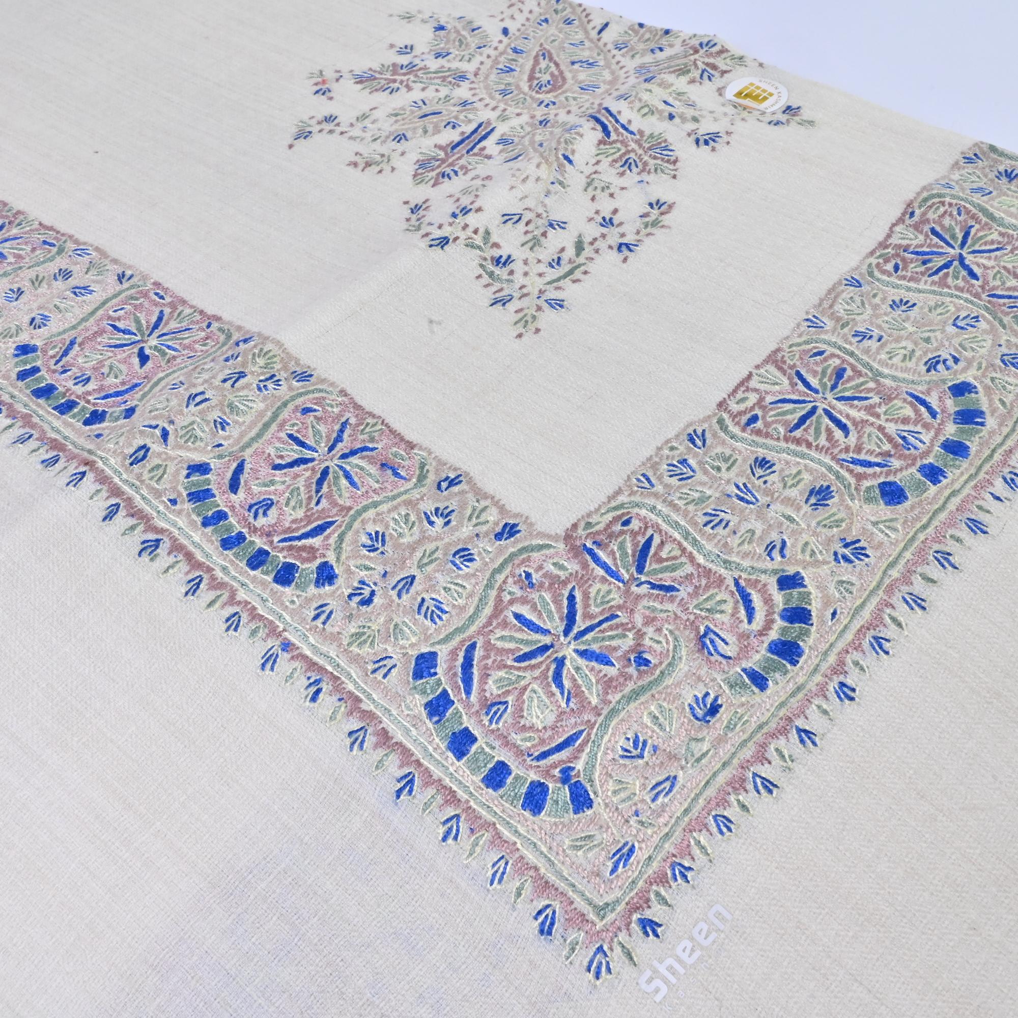 Sheenasic edition Kashmiri shawl with Multicolor Floral pattern Hand Embroidery and Light Green Base