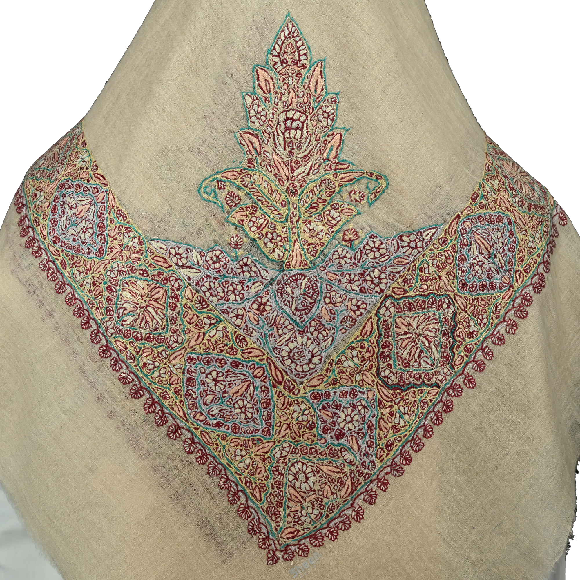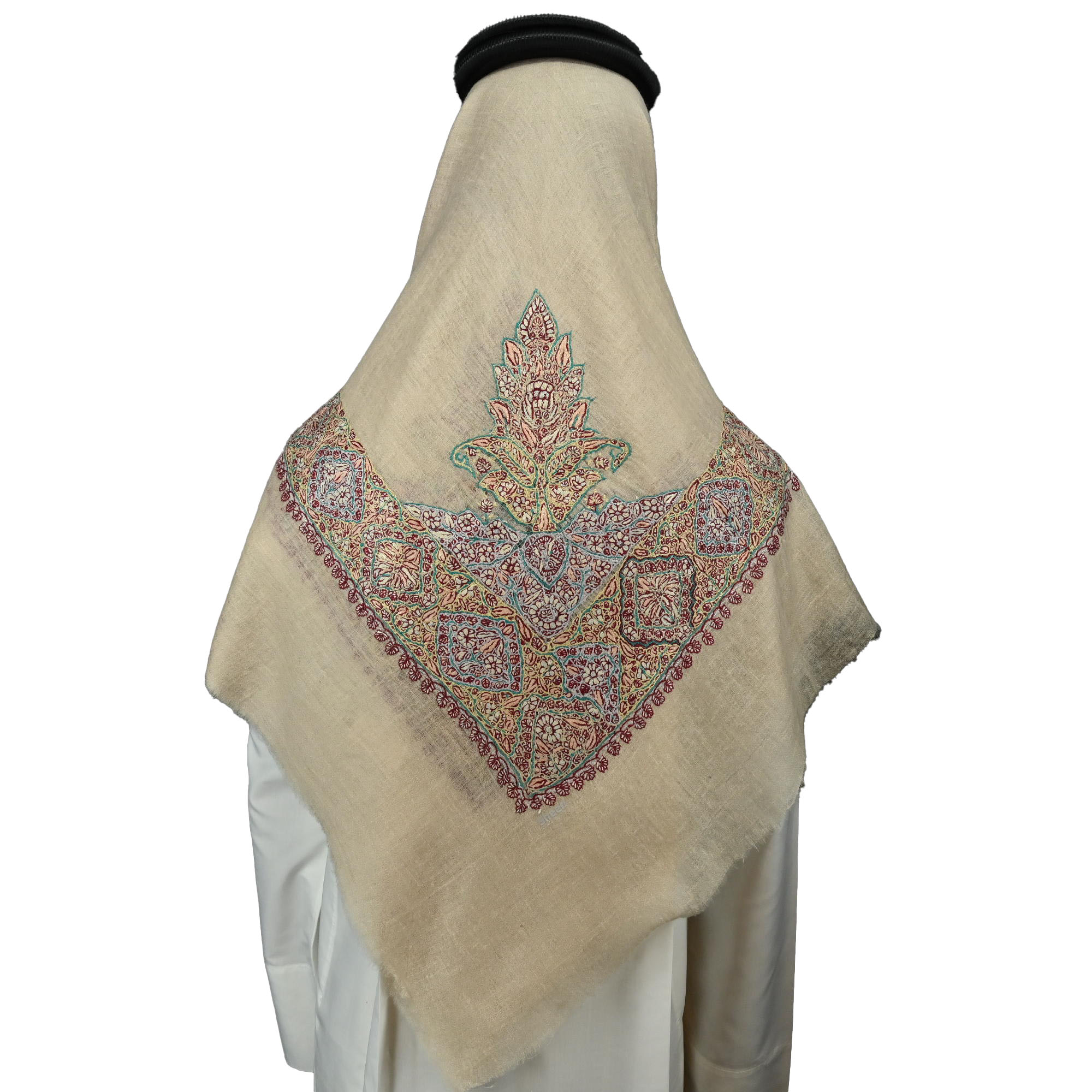 Sheenasic edition Kashmiri shawl with Multicolor Hand Embroidery and Natural White base