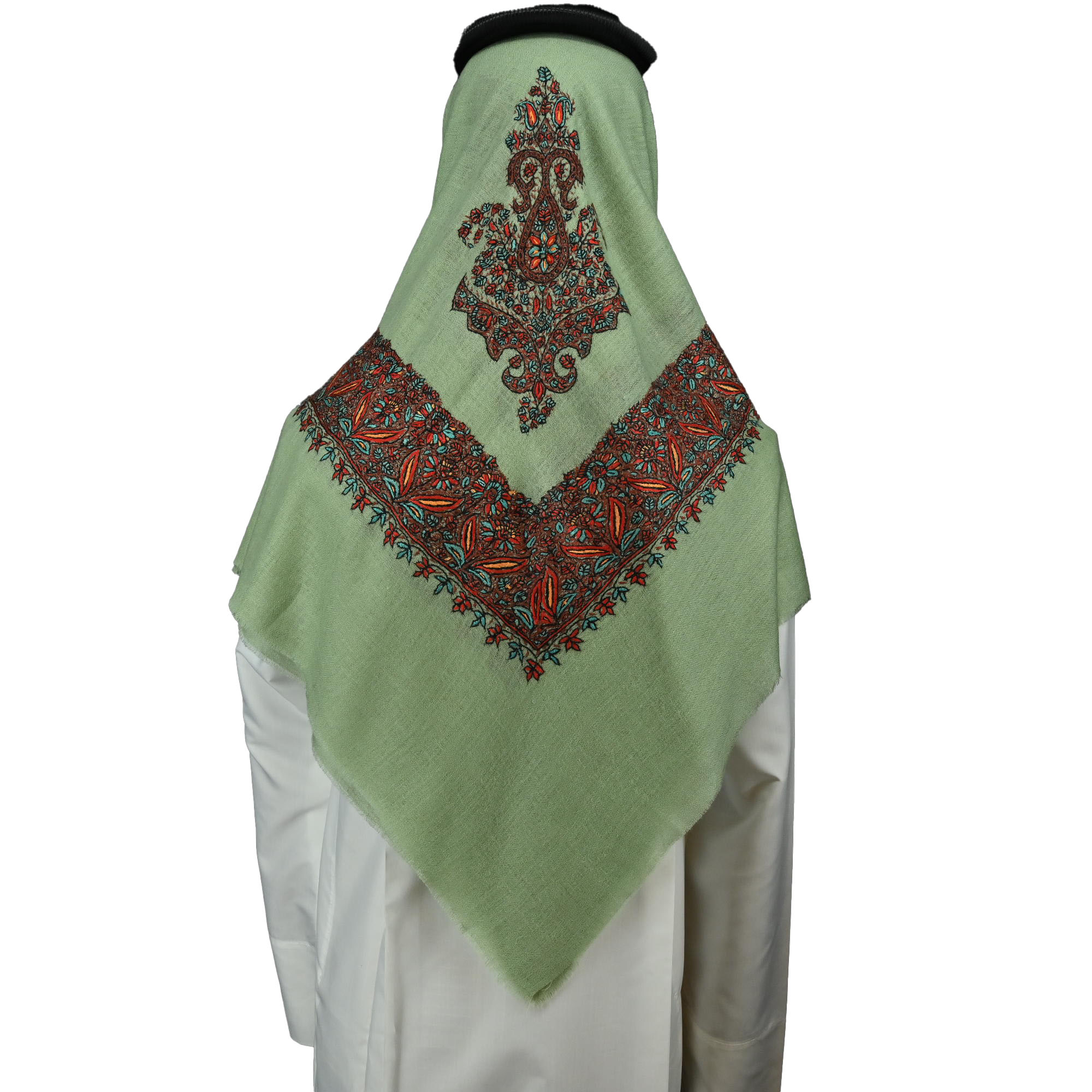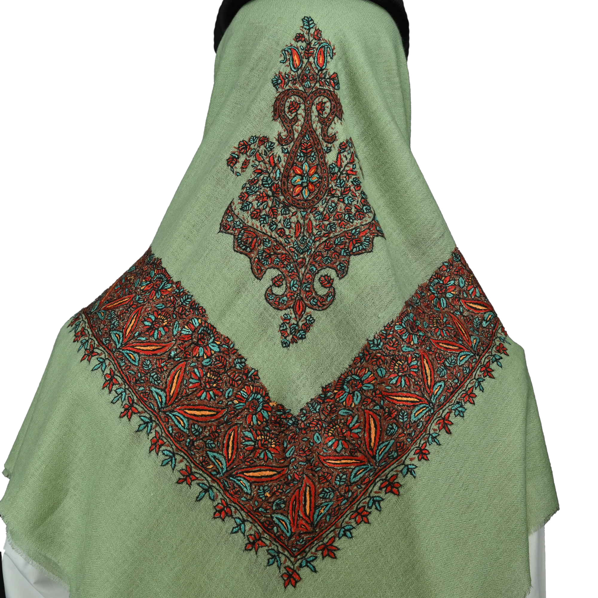 Sheenasic edition Kashmiri shawl with Multicolor pattern Hand Embroidery and Green Base