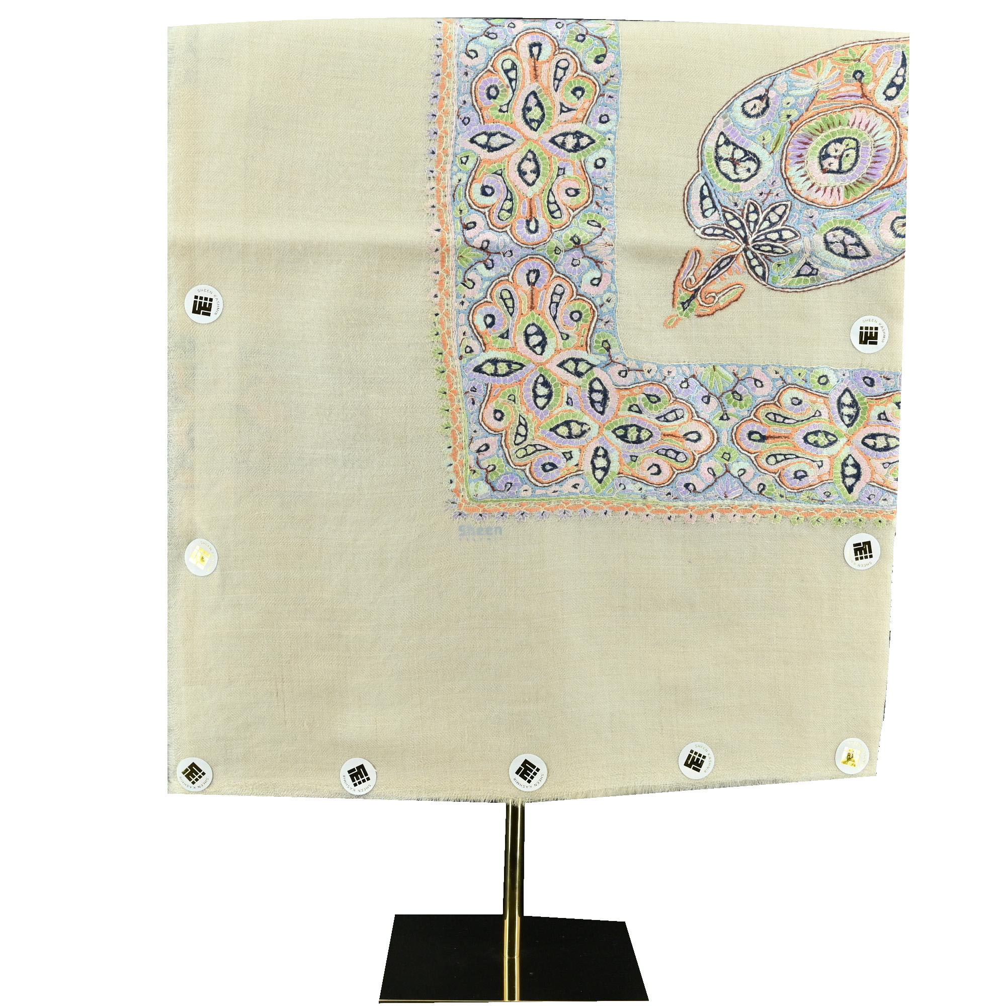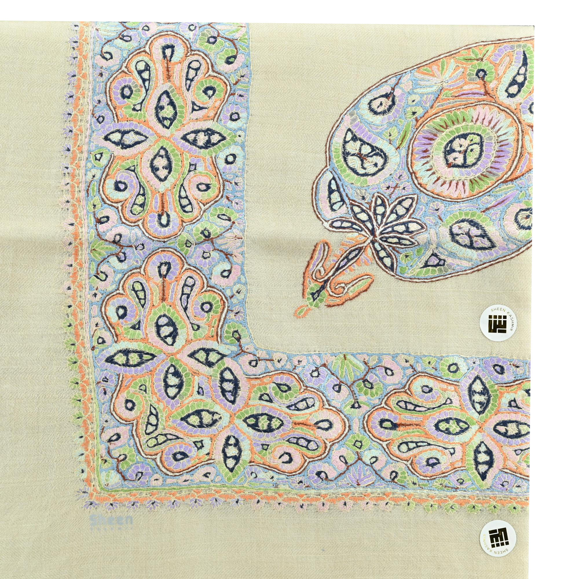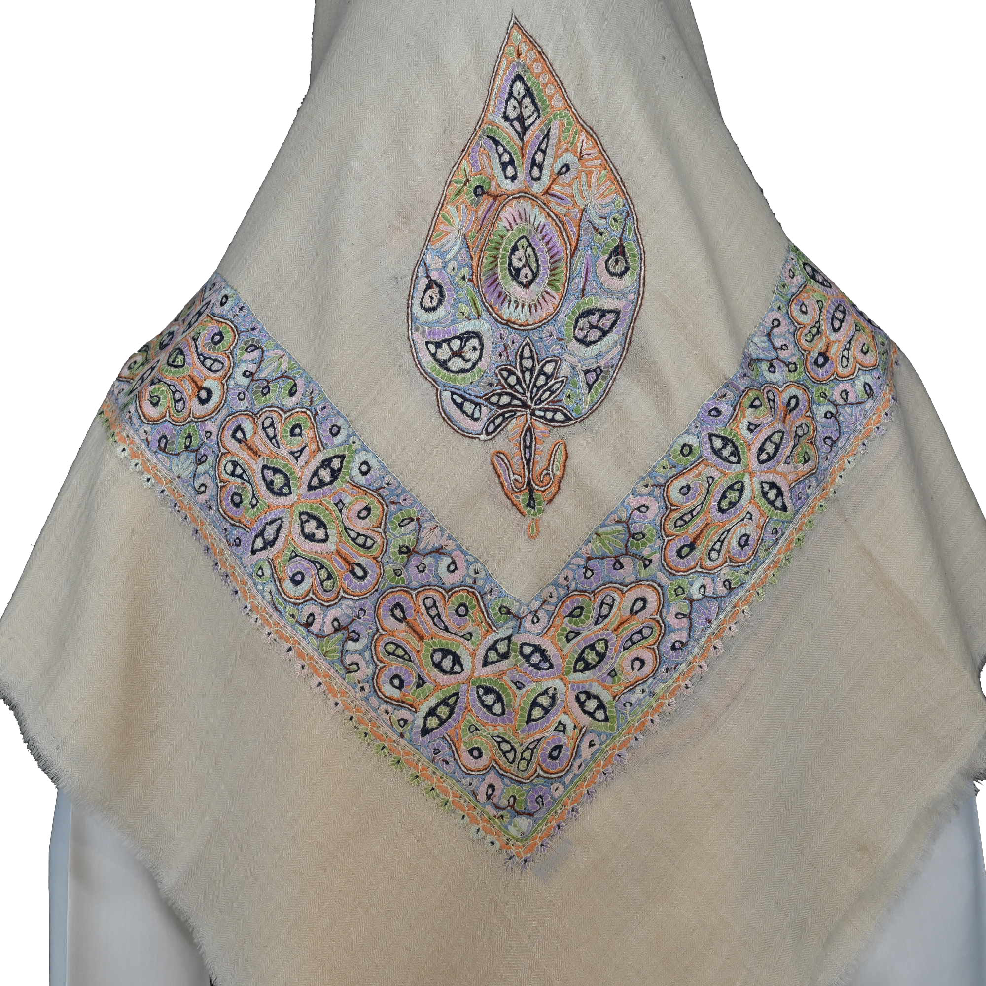 Floral Pattern Kashmiri Shawl with multi color Hand Embroidery