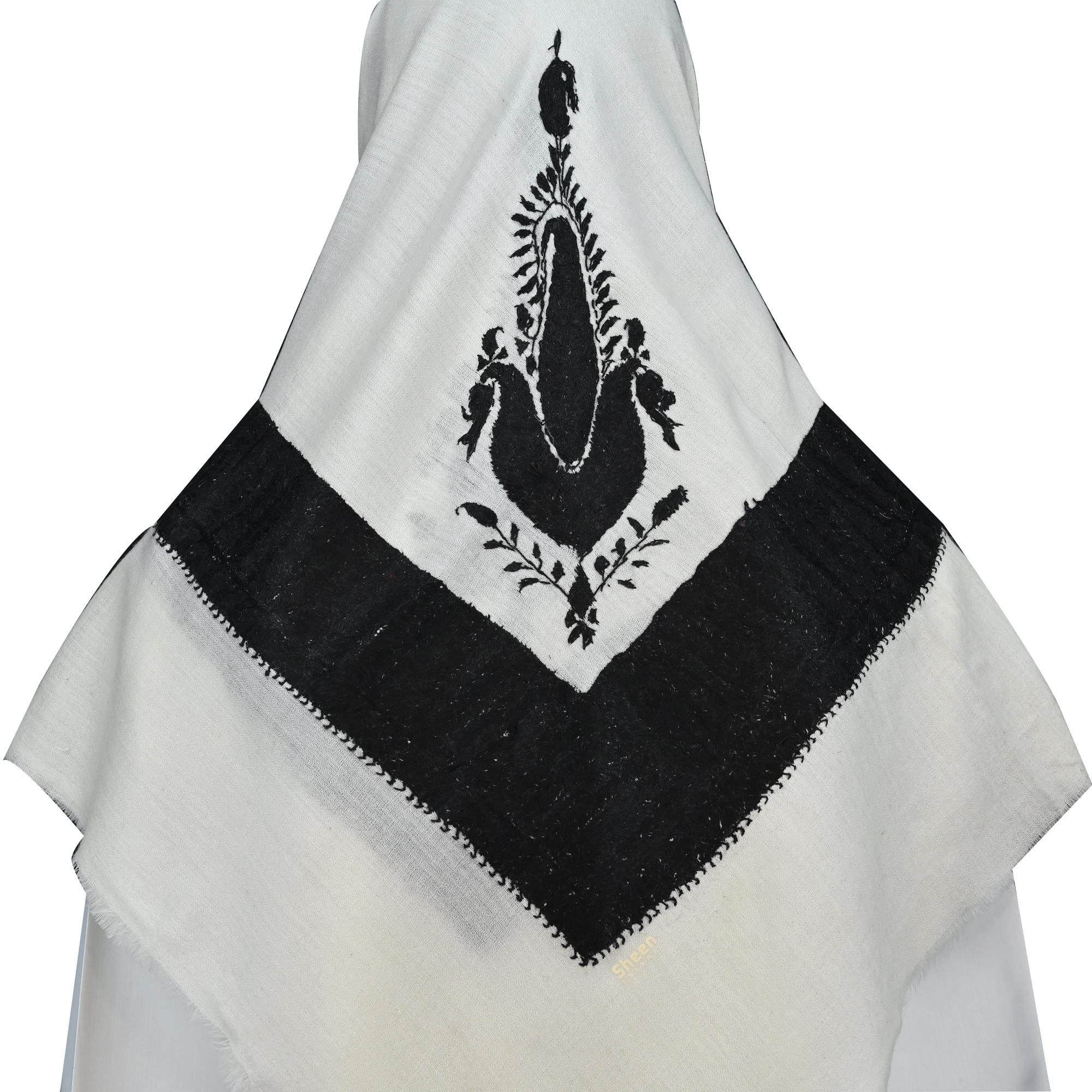 Blended Wool Traditional design shawl with Black Embroidery