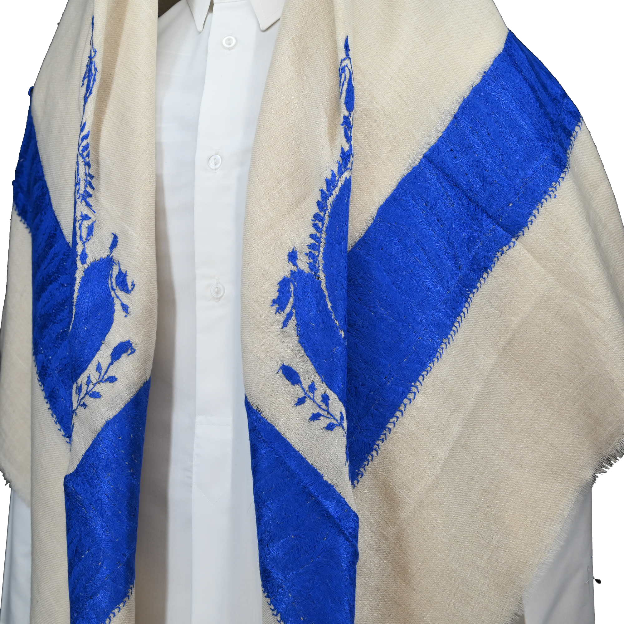 Signature edition Fine Shawl with floral pattern Blue and cream color Fine Embroidery