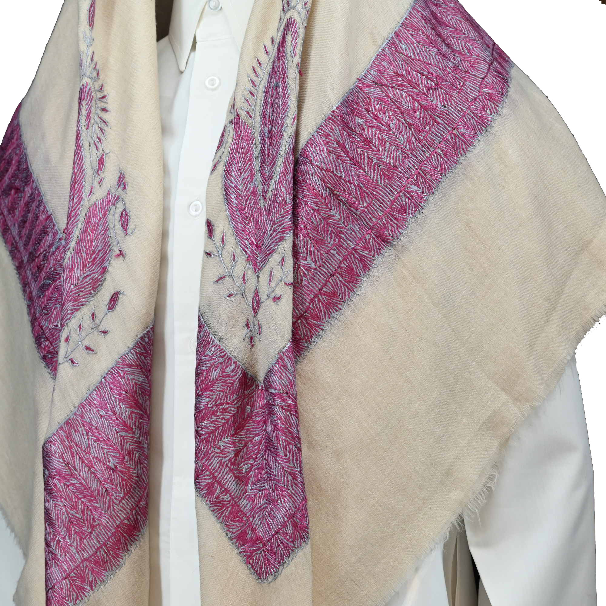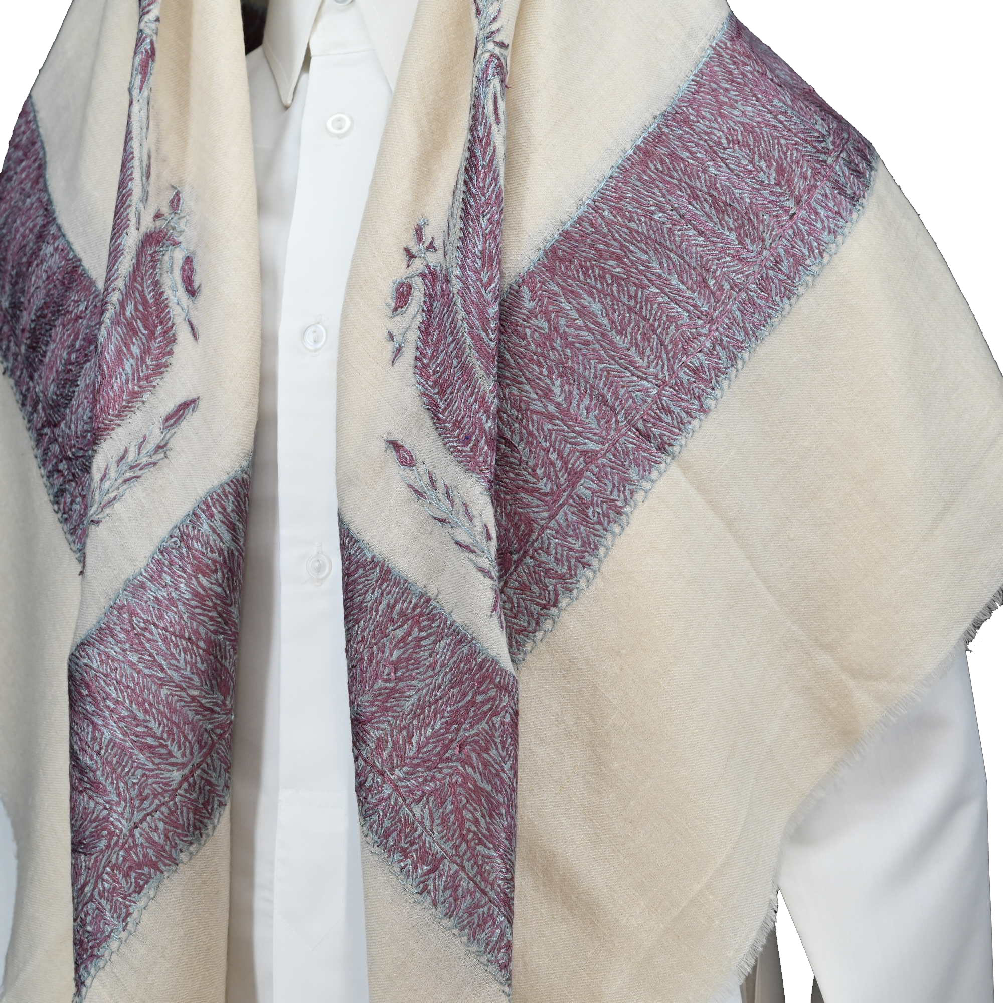 Signature edition Fine Shawl with floral pattern Blue and cream color Fine Embroidery